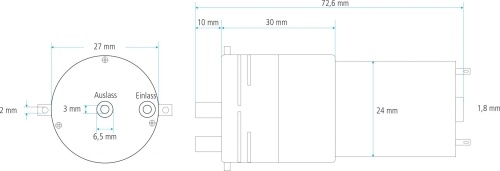 Die Wasserpumpe hat eine Förderleistung von ca. 0,8L / Min und eignet sich zum Betreiben von Löschmonitoren. Die Betriebsspannung beträgt 12V, kann aber unter Reduzierung der Förderleistung auch mit 6V betrieben werden. Die Pumpe kann mit dem Schalter "Power-Switch" Bestell-Nr. 7003/85 über die Fernsteuerung an- und ausgeschalten werden. Abmessungen siehe technische Zeichnung. An den Anschluß passen Schläuche mit 3 mm Innendurchmesser.Hersteller und verantwortliche Person (Informationspflichten zur GPSR Produktsicherheitsverordnung) aero-naut Modellbau GmbH + Co. KG Stuttgarter Straße 18-22 72766 Reutlingen email: service@aeronaut.de