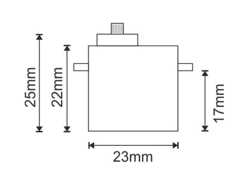 Technische Daten -Betriebsspannung = 4,8 -6,0V -Stellkraft = 1,6 / 2,1kg -Stellzeit = 0,11 / 0,09s @ 45° -Breite = 12,0mm -Länge = 23,0mm -Höhe = 25,0mm -Kabellänge = 180mm -Gewicht = 9,0g