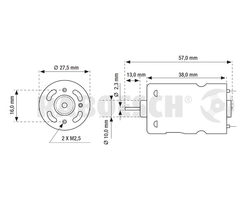 Techn.-Daten -Nennspannung 7,2V DC -Spannungsbereich 6-9V DC -Wellendurchmesser 2,3 mm -Freie Wellenlänge 13 mm -Gewicht 72 g